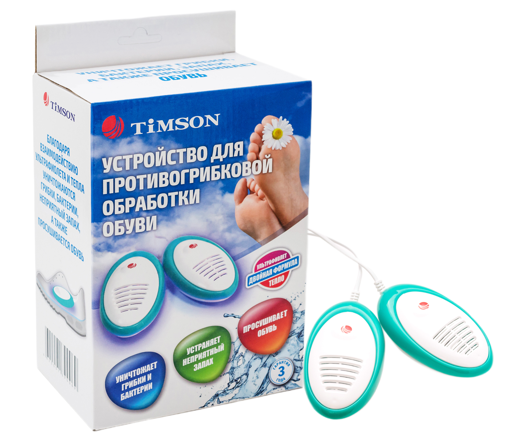 В сушилке используется ультрафиолет типа А. Такой ультрафиолет не выделяет сильно резкий запах озона при своей работе. Однако именно он в сочетании с теплом при длительной обработке обуви (от 4-6 часов) полностью уничтожает грибки (особенно самый распространенный Trichophyton rubrum) и бактерии. Поэтому в следствие их уничтожение дополнительно устраняется еще и запах у обуви. При этом запах озона все же выделяется, но не сильный. Часть его впитывается обувью. Плюс процесс обработки проходит не в замкнутом пространстве, что также не даст явный запах озона. Данная сушилка исследовалась в научно-исследовательских институтах в области микробиологии и микологии. И показала свою эффективность на уничтожение 99% грибков и бактерий. Результат клинически доказан. Любую замену, во избежание опасности, должны производить изготовитель, сервисная служба или подобный квалифицированный персонал.